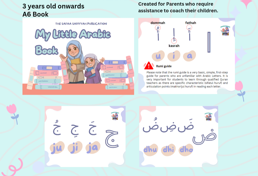 We have included a guide for parents who are unsure of reading Arabic Letters.