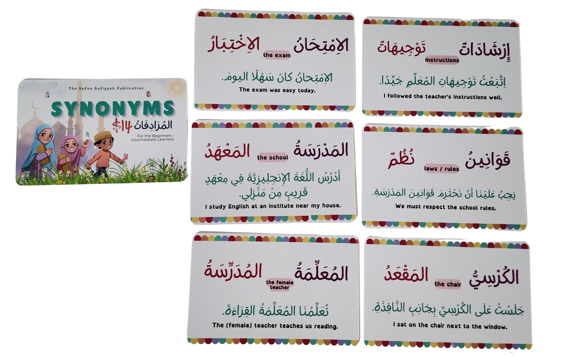 Over 80 pairs of synonyms that come with translation and example of use in sentences.