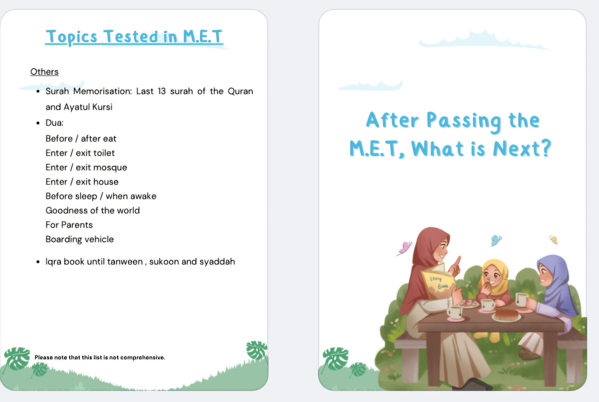 Includes details on full time Madrasah, topics for MET, what can you do if your child makes it or does not make it through and more!